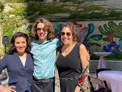 We didn’t stop there. I knew I wanted large-scale artwork in the courtyard. Through our partnership with Annamarie and Liz, I connected with The Chicago Mosaic School, a non-profit organization dedicated to advancing the art of mosaic. But then, through a wonderful coincidence, I met local artist Benjamin Durst, and after speaking with him, I knew that he should design a mosaic wall for us. Ben collaborated with The Chicago Mosaic School, who translated Ben’s designs into a large-scale mosaic, and JSL labor assisted with the installation. The result is an intricate, abstract piece aptly named “Peaceful Garden.”